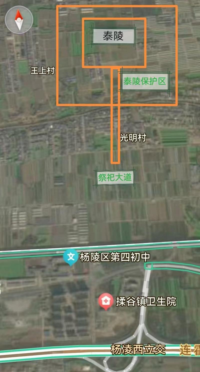 2、地理位置与环境:泰陵位于杨凌示范区五泉镇王上村东北约200米处,南距渭河约5公里,北临为湋河约2公里。该区域气候属温带大陆性气候,年均气温12.9℃,平均降雨量635毫米。